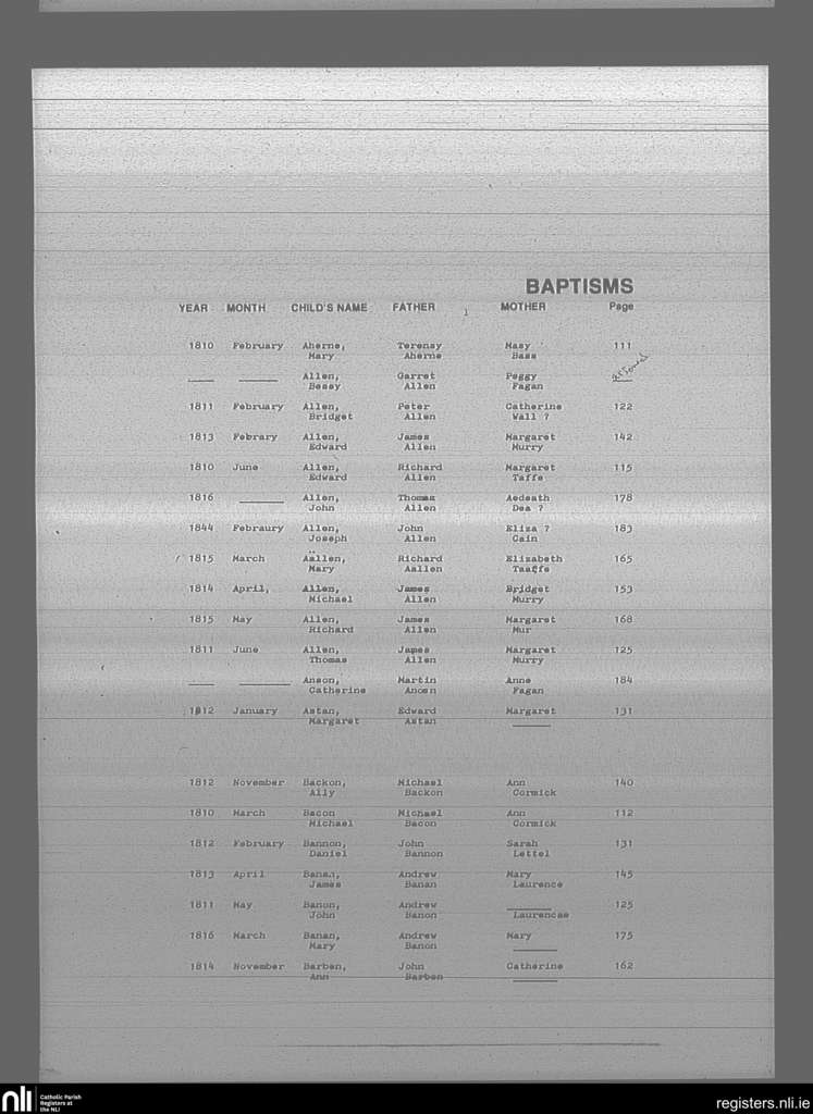 Mullingar; County of Westmeath; Diocese of Meath. Baptisms, Feb. 1810 to Feb. 1844