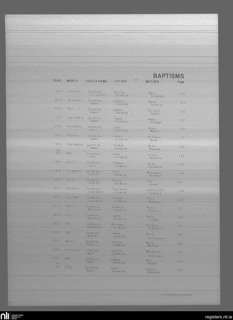 Mullingar; County of Westmeath; Diocese of Meath. Baptisms, Mar. 1810 to Feb. 1816