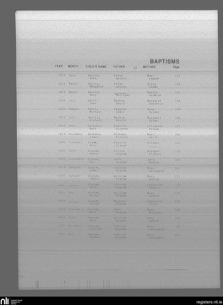Mullingar; County of Westmeath; Diocese of Meath. Baptisms, May 1810 to Feb. 1844