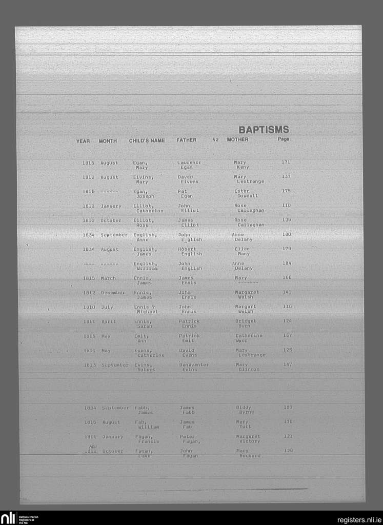 Mullingar; County of Westmeath; Diocese of Meath. Baptisms, Jan. 1810 to Sep. 1834