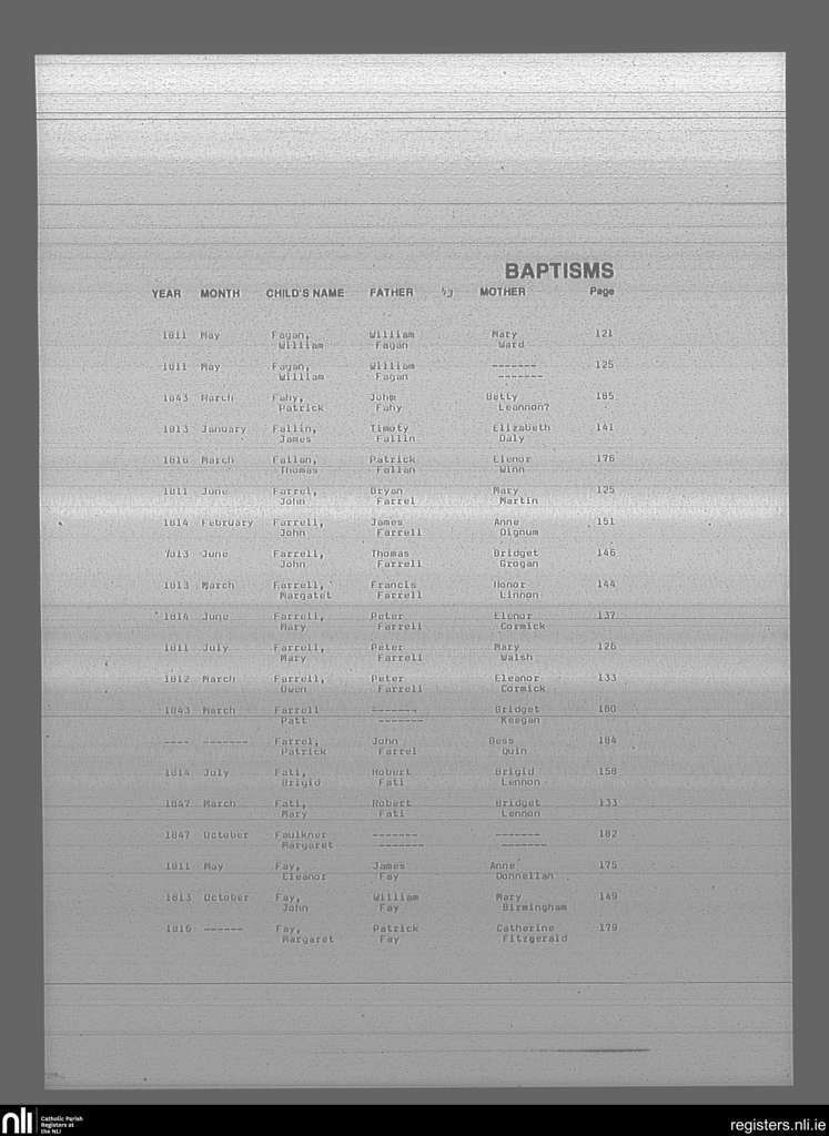 Mullingar; County of Westmeath; Diocese of Meath. Baptisms, May 1811 to Oct. 1847