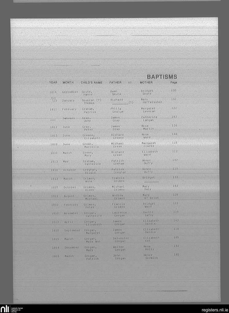Mullingar; County of Westmeath; Diocese of Meath. Baptisms, Feb. 1810 to Oct. 1897