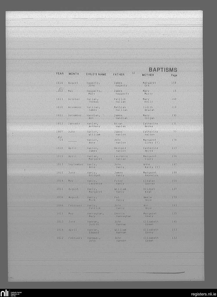 Mullingar; County of Westmeath; Diocese of Meath. Baptisms, May 1802 to Feb. 1844