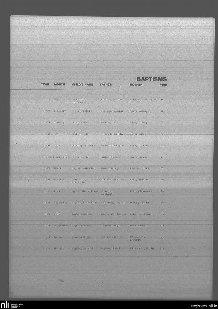 Mullingar; County of Westmeath; Diocese of Meath. Baptisms, Jan. 1829 to May 1832