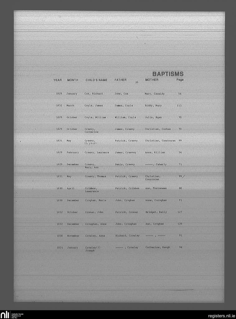 Mullingar; County of Westmeath; Diocese of Meath. Baptisms, Jan. 1829 to Dec. 1832