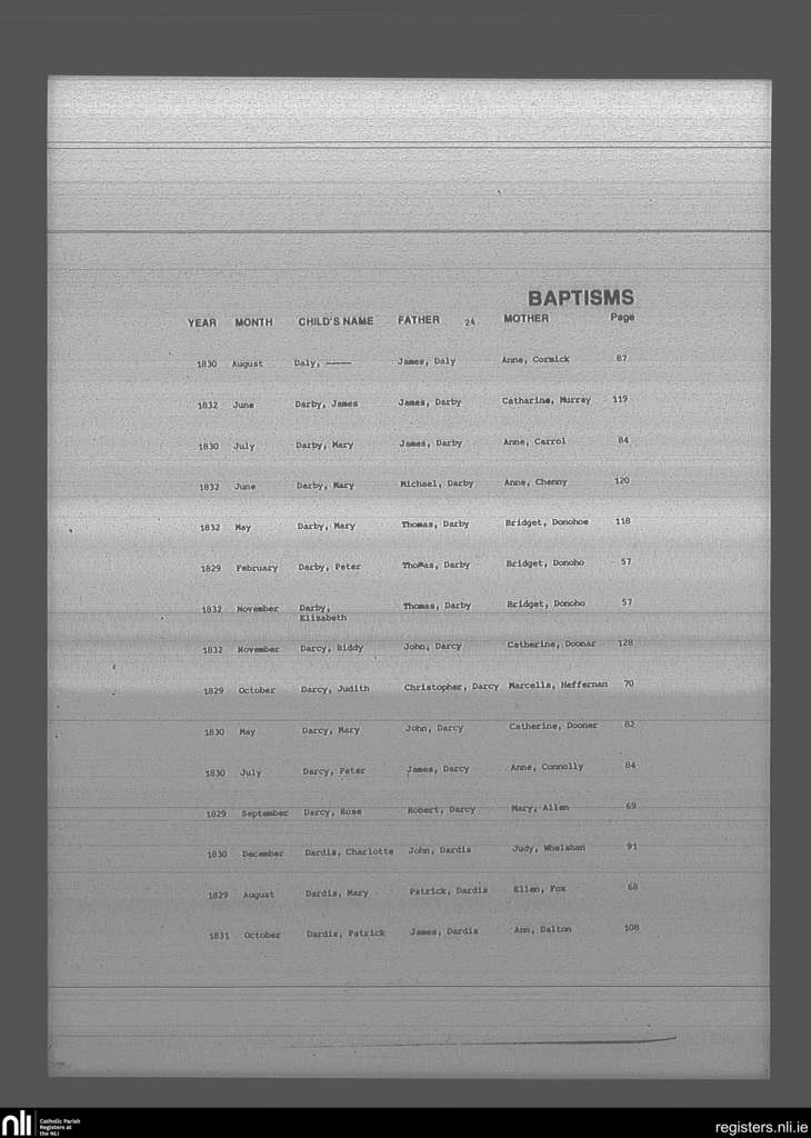 Mullingar; County of Westmeath; Diocese of Meath. Baptisms, Feb. 1829 to Nov. 1832