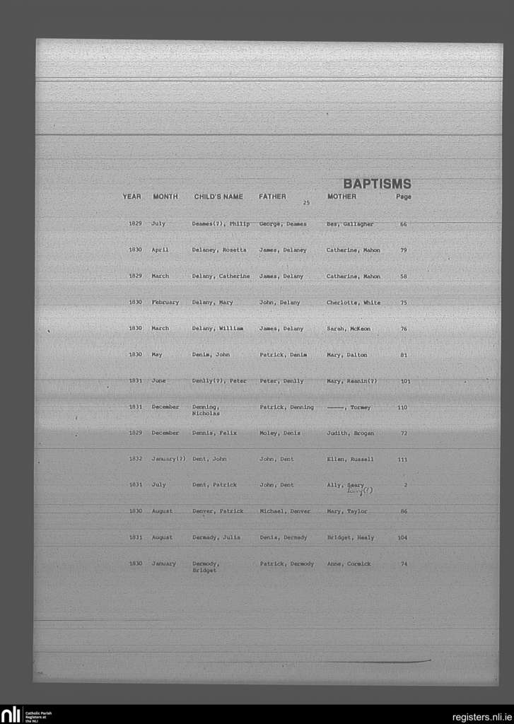 Mullingar; County of Westmeath; Diocese of Meath. Baptisms, Mar. 1829 to Jan. 1832