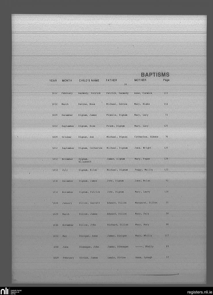 Mullingar; County of Westmeath; Diocese of Meath. Baptisms, Jan. 1828 to Nov. 1832