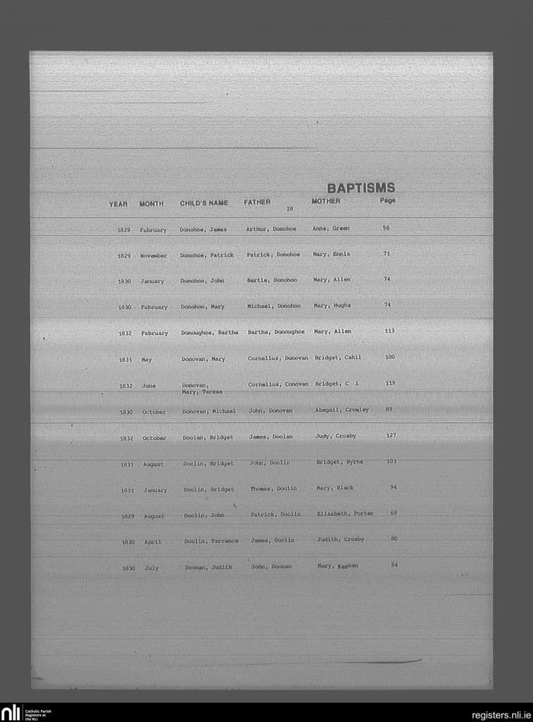 Mullingar; County of Westmeath; Diocese of Meath. Baptisms, Feb. 1829 to Oct. 1832