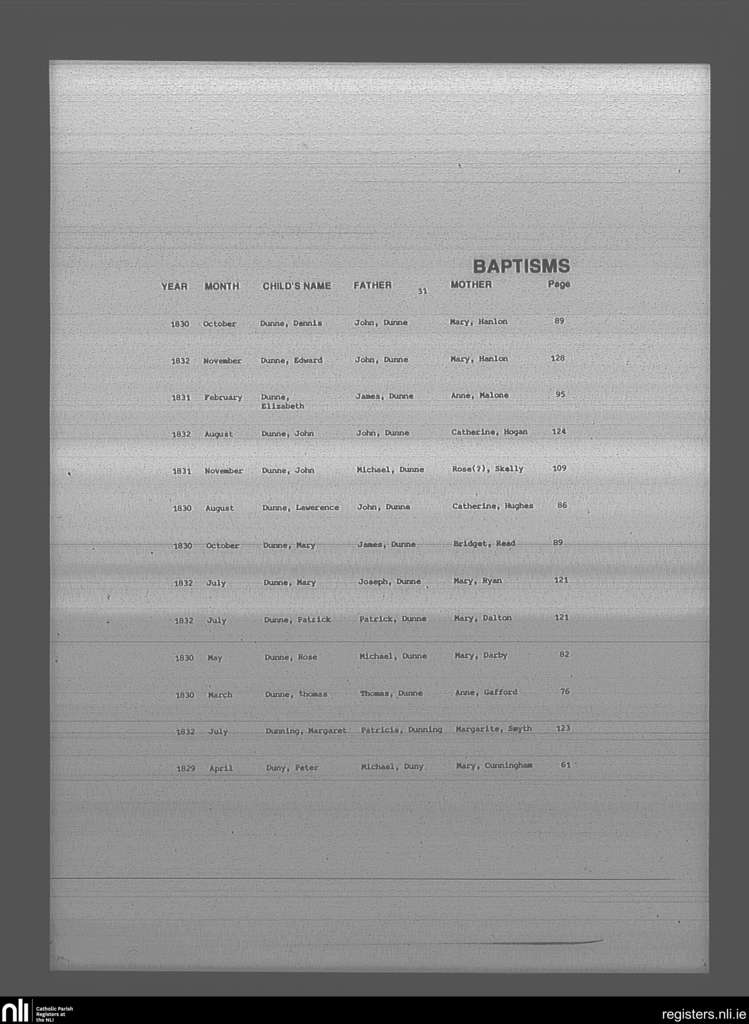 Mullingar; County of Westmeath; Diocese of Meath. Baptisms, Apr. 1829 to Nov. 1832