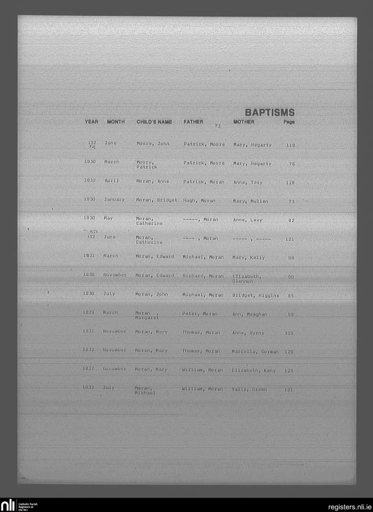 Mullingar; County of Westmeath; Diocese of Meath. Baptisms, Mar. 1829 to Dec. 1832