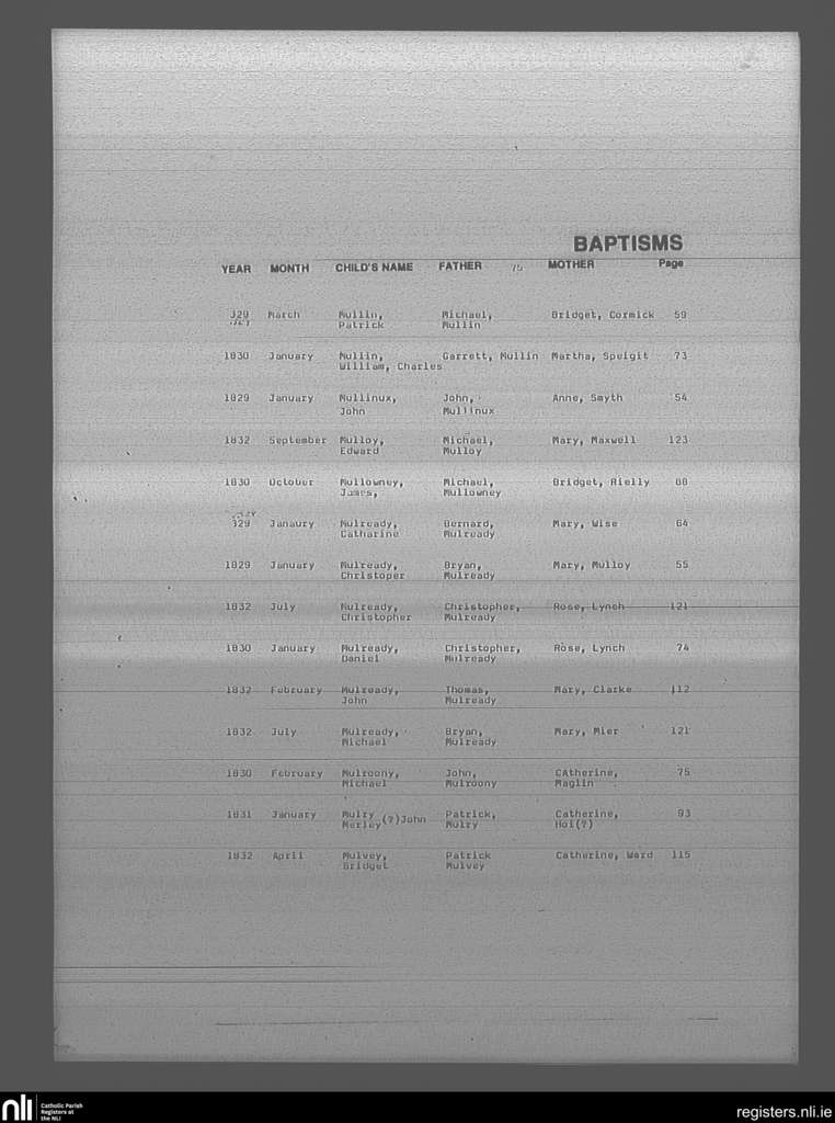 Mullingar; County of Westmeath; Diocese of Meath. Baptisms, Jan. 1829 to Sep. 1832