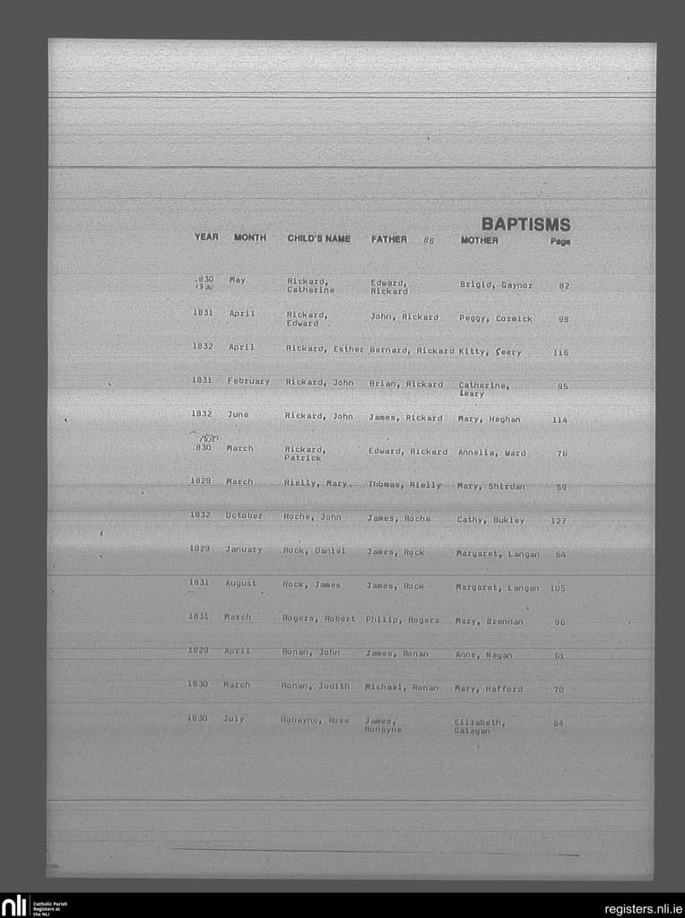 Mullingar; County of Westmeath; Diocese of Meath. Baptisms, Jan. 1829 to Oct. 1832