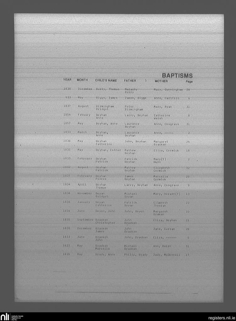 Mullingar; County of Westmeath; Diocese of Meath. Baptisms, Aug. 1832 to Aug. 1837