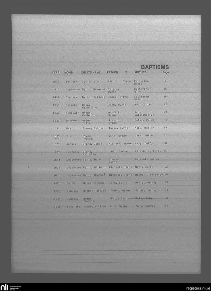 Mullingar; County of Westmeath; Diocese of Meath. Baptisms, Sep. 1833 to Aug. 1837