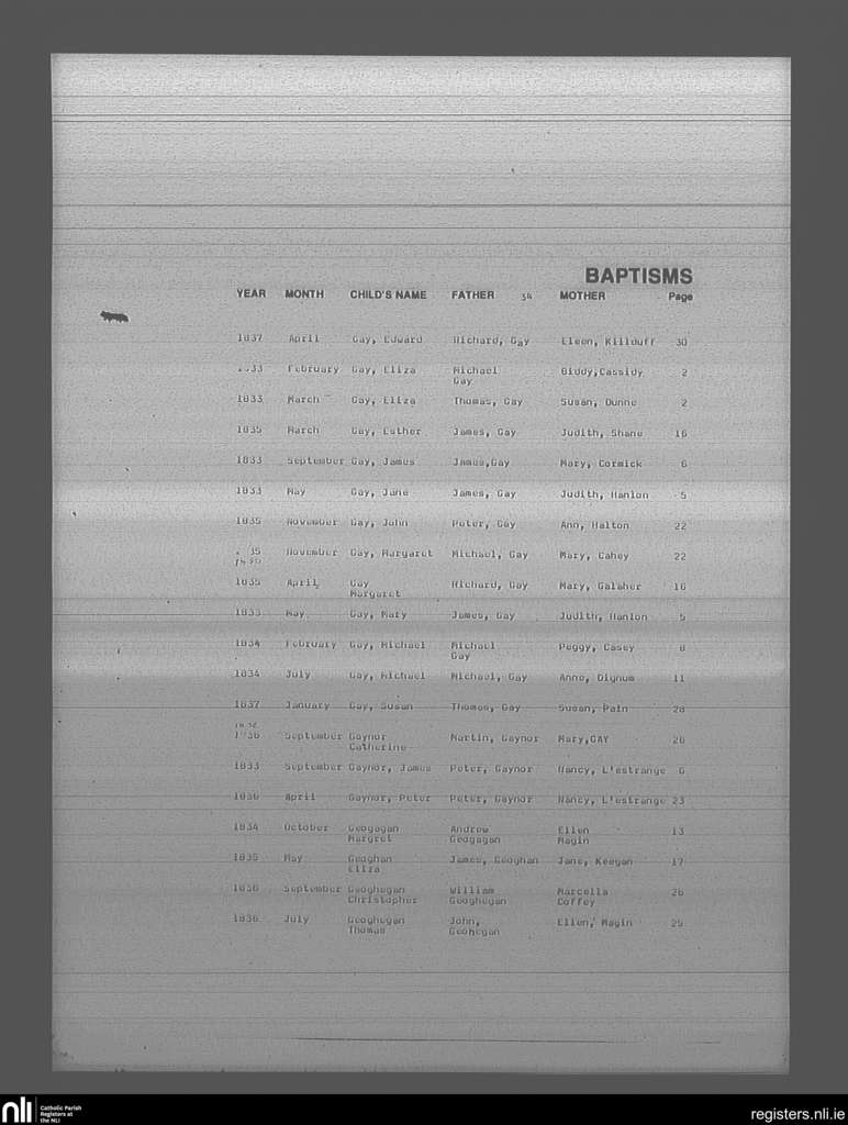 Mullingar; County of Westmeath; Diocese of Meath. Baptisms, Feb. 1833 to Apr. 1837