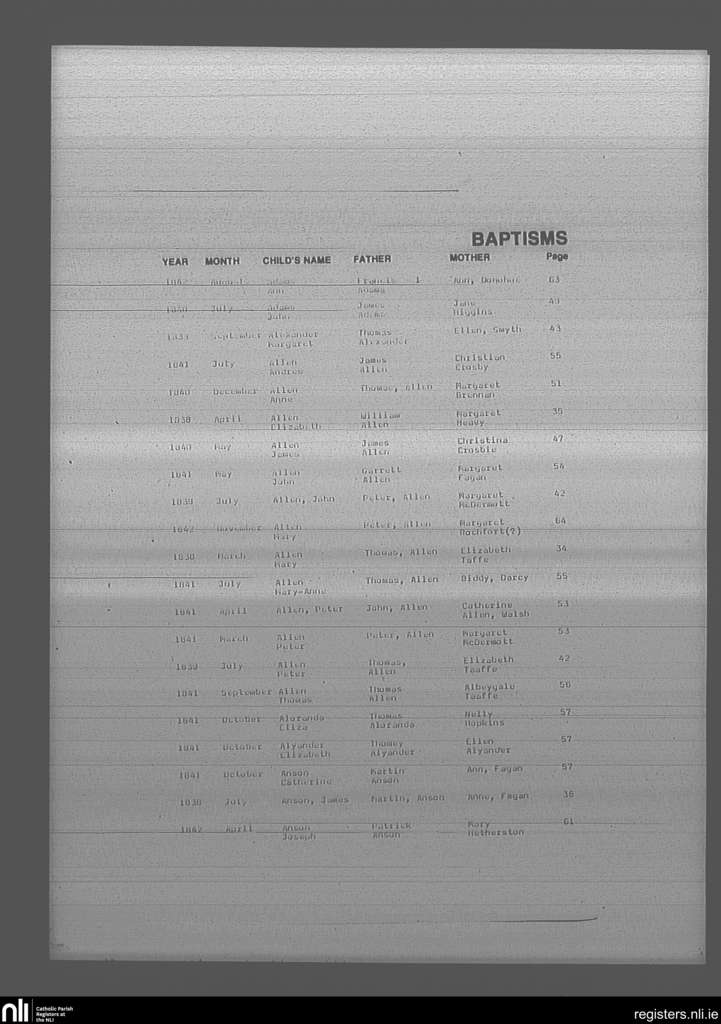 Mullingar; County of Westmeath; Diocese of Meath. Baptisms, Mar. 1838 to Nov. 1842