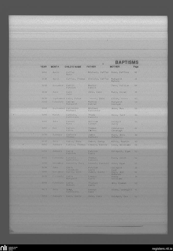 Mullingar; County of Westmeath; Diocese of Meath. Baptisms, Apr. 1838 to May 1842