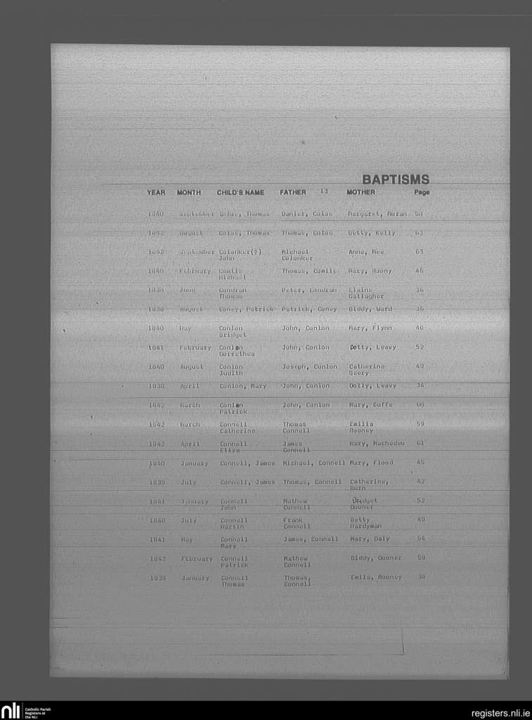 Mullingar; County of Westmeath; Diocese of Meath. Baptisms, Apr. 1838 to Sep. 1842