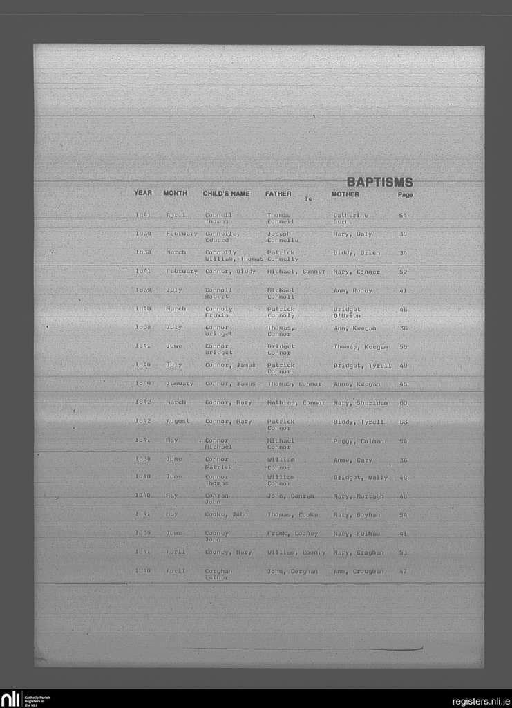 Mullingar; County of Westmeath; Diocese of Meath. Baptisms, Mar. 1838 to Aug. 1842