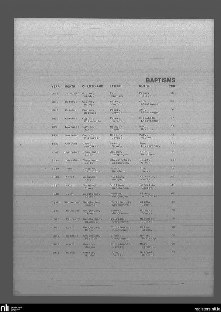 Mullingar; County of Westmeath; Diocese of Meath. Baptisms, Mar. 1837 to Oct. 1842
