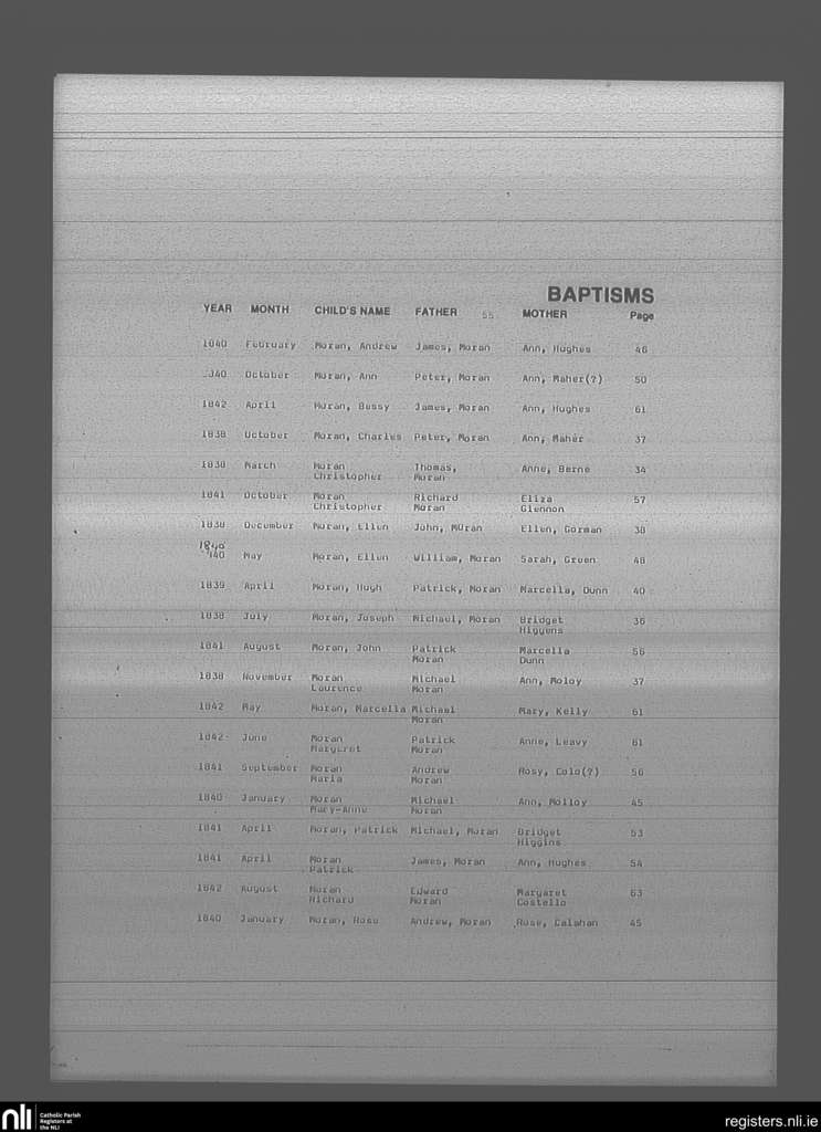 Mullingar; County of Westmeath; Diocese of Meath. Baptisms, Mar. 1838 to Aug. 1842