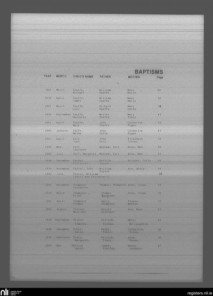 Mullingar; County of Westmeath; Diocese of Meath. Baptisms, Dec. 1838 to Nov. 1842