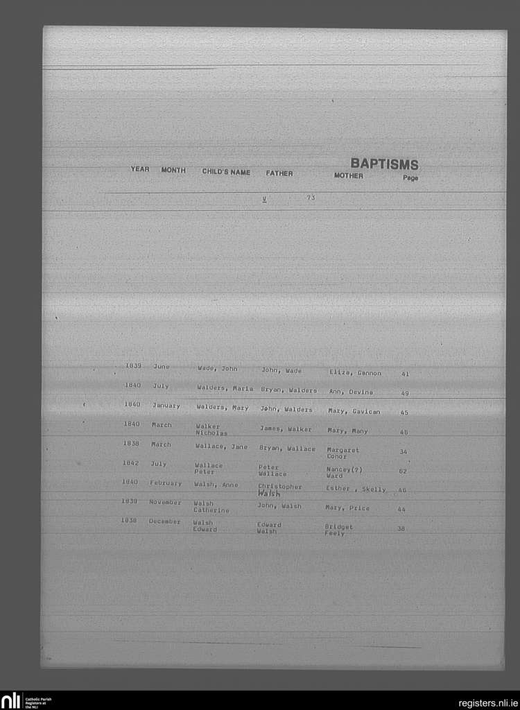 Mullingar; County of Westmeath; Diocese of Meath. Baptisms, Mar. 1838 to July 1842