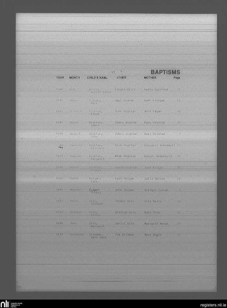Mullingar; County of Westmeath; Diocese of Meath. Baptisms, Aug. 1844 to Oct. 1847