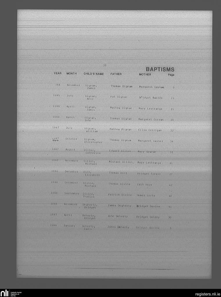 Mullingar; County of Westmeath; Diocese of Meath. Baptisms, Jan. 1844 to Dec. 1848