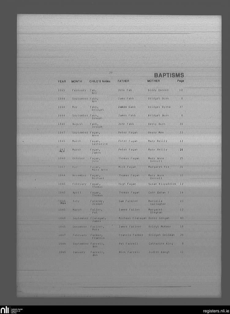 Mullingar; County of Westmeath; Diocese of Meath. Baptisms, Sep. 1844 to Sep. 1848