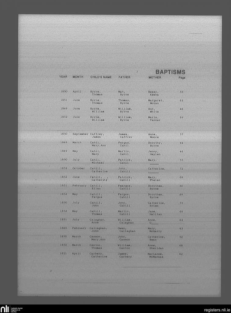 Mullingar; County of Westmeath; Diocese of Meath. Baptisms, Feb. 1849 to Oct. 1852