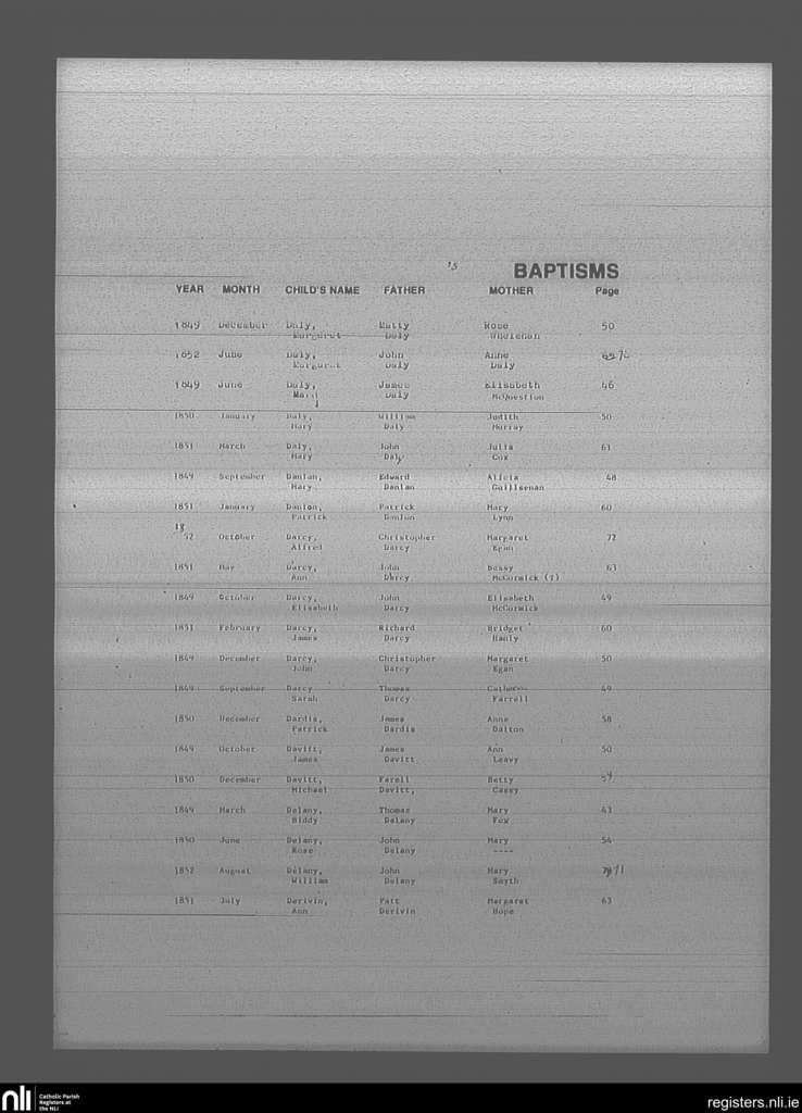 Mullingar; County of Westmeath; Diocese of Meath. Baptisms, Mar. 1849 to Oct. 1852