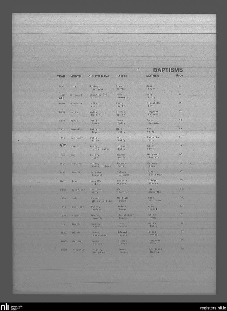 Mullingar; County of Westmeath; Diocese of Meath. Baptisms, Jan. 1849 to Aug. 1852