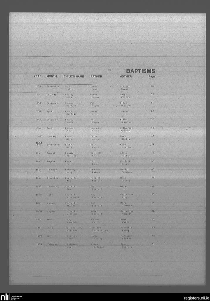 Mullingar; County of Westmeath; Diocese of Meath. Baptisms, Jan. 1849 to Sep. 1852