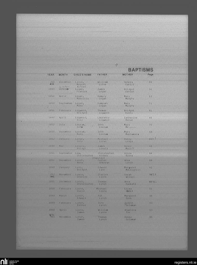 Mullingar; County of Westmeath; Diocese of Meath. Baptisms, Jan. 1849 to Nov. 1852