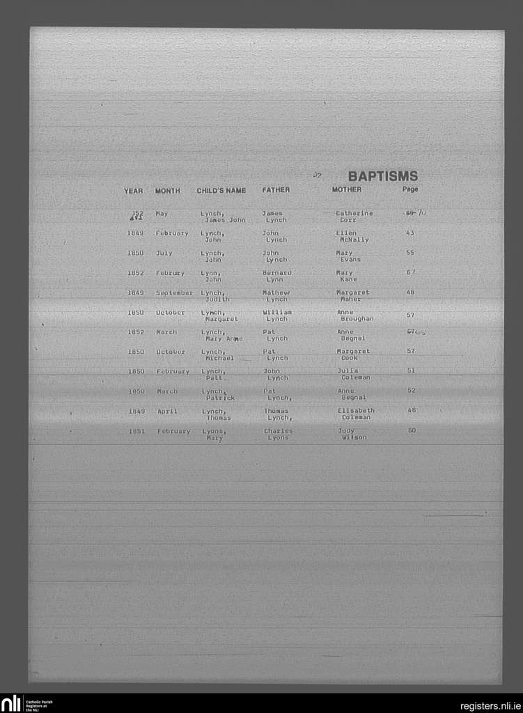 Mullingar; County of Westmeath; Diocese of Meath. Baptisms, Feb. 1849 to May 1852