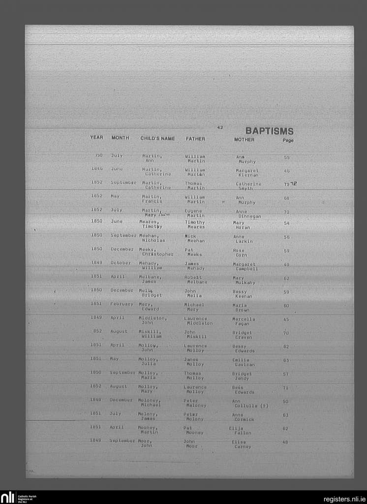 Mullingar; County of Westmeath; Diocese of Meath. Baptisms, June 1846 to Sep. 1852