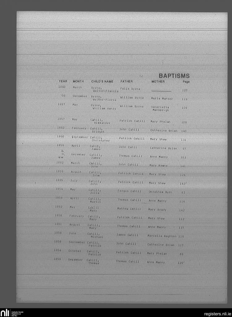 Mullingar; County of Westmeath; Diocese of Meath. Baptisms, May 1854 to July 1865