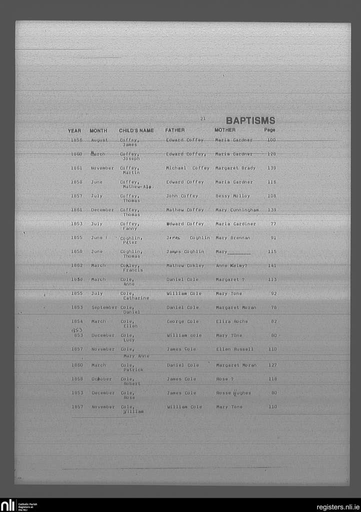 Mullingar; County of Westmeath; Diocese of Meath. Baptisms, July 1853 to Mar. 1862