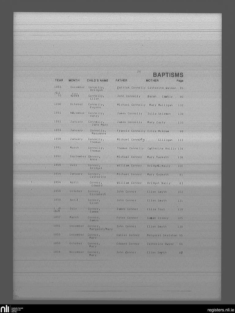 Mullingar; County of Westmeath; Diocese of Meath. Baptisms, Jan. 1854 to Dec. 1861