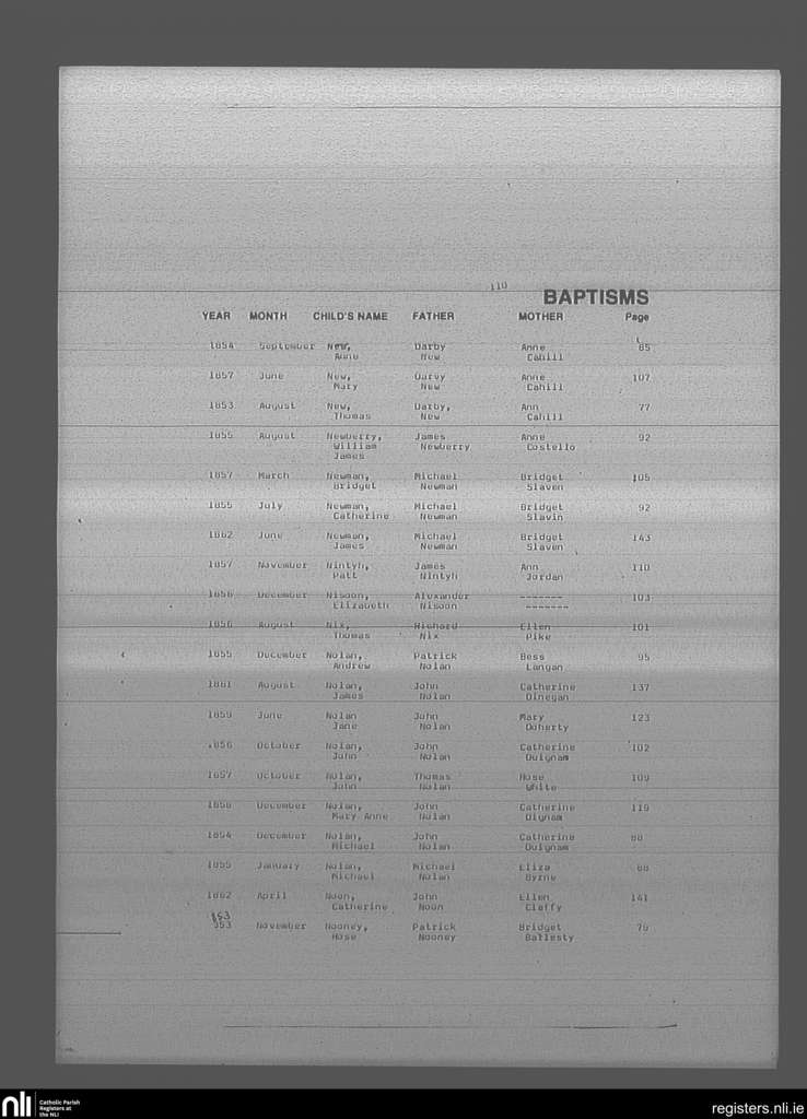 Mullingar; County of Westmeath; Diocese of Meath. Baptisms, June 1852 to Apr. 1862