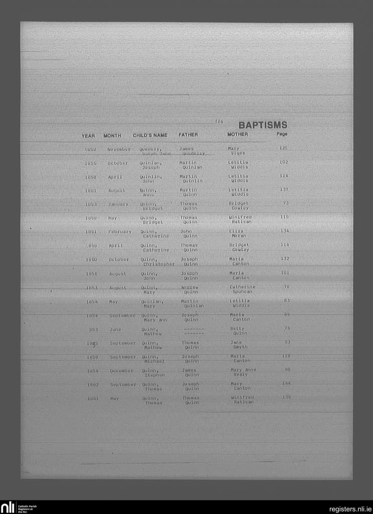 Mullingar; County of Westmeath; Diocese of Meath. Baptisms, Jan. 1853 to Sep. 1862