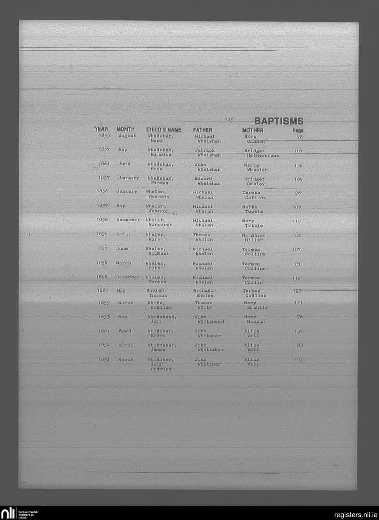 Mullingar; County of Westmeath; Diocese of Meath. Baptisms, May 1853 to June 1861