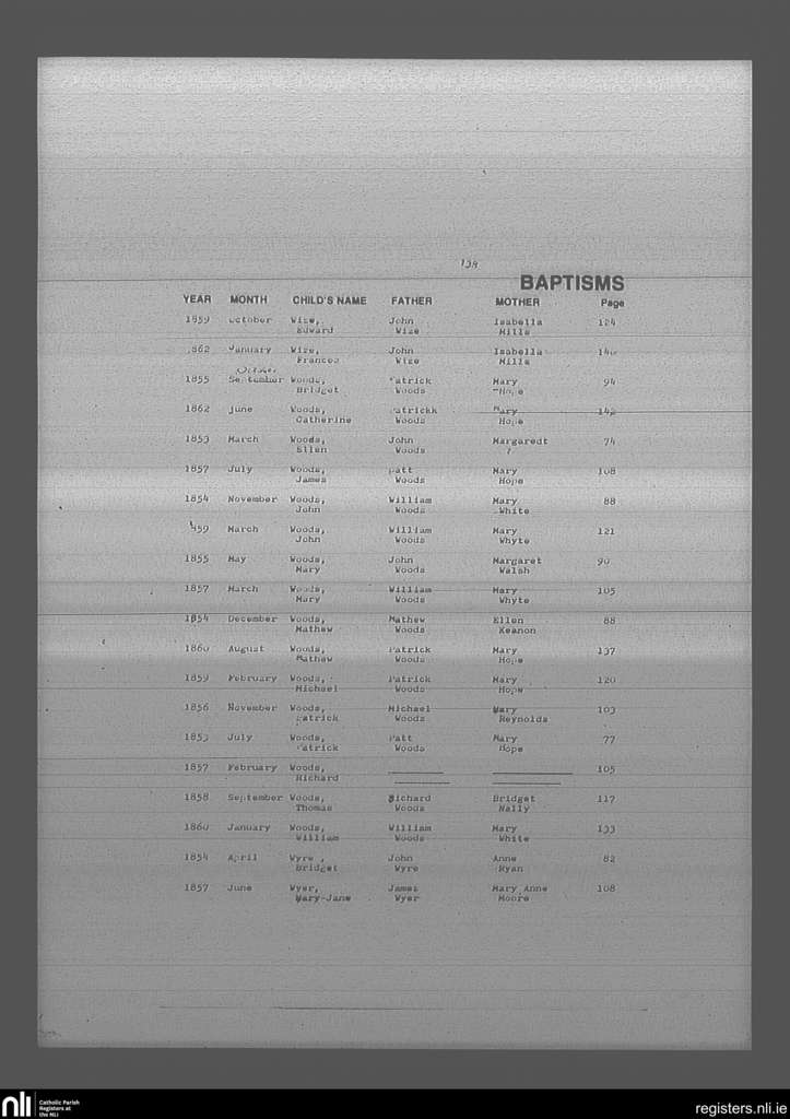 Mullingar; County of Westmeath; Diocese of Meath. Baptisms, Mar. 1853 to June 1862