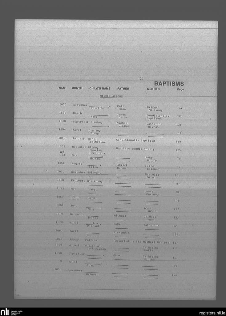 Mullingar; County of Westmeath; Diocese of Meath. Baptisms, Feb. 1850 to Sep. 1880