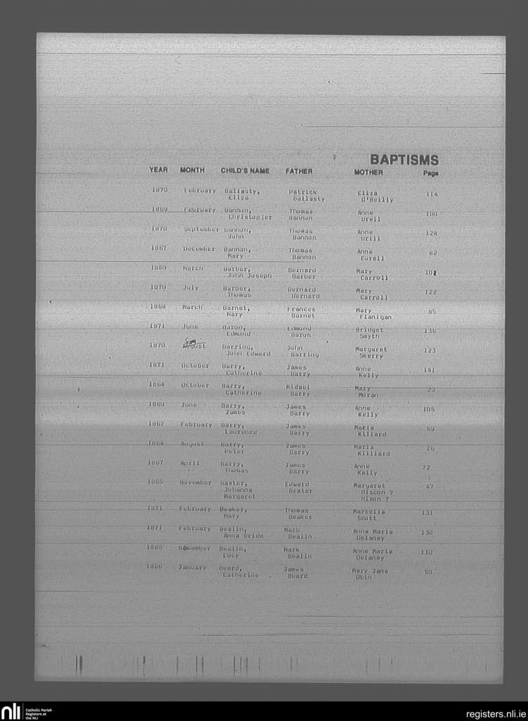 Mullingar; County of Westmeath; Diocese of Meath. Baptisms, Aug. 1864 to Oct. 1871