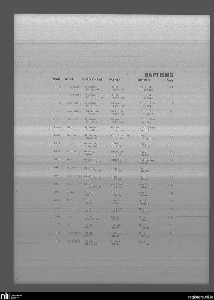 Mullingar; County of Westmeath; Diocese of Meath. Baptisms, May 1863 to Feb. 1872