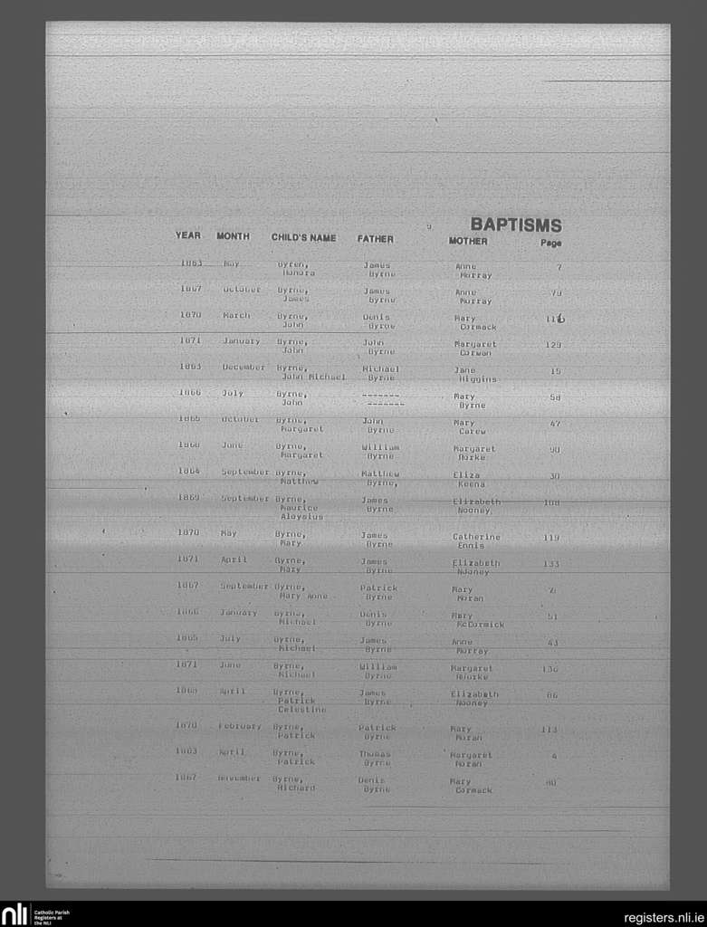 Mullingar; County of Westmeath; Diocese of Meath. Baptisms, Apr. 1863 to June 1871