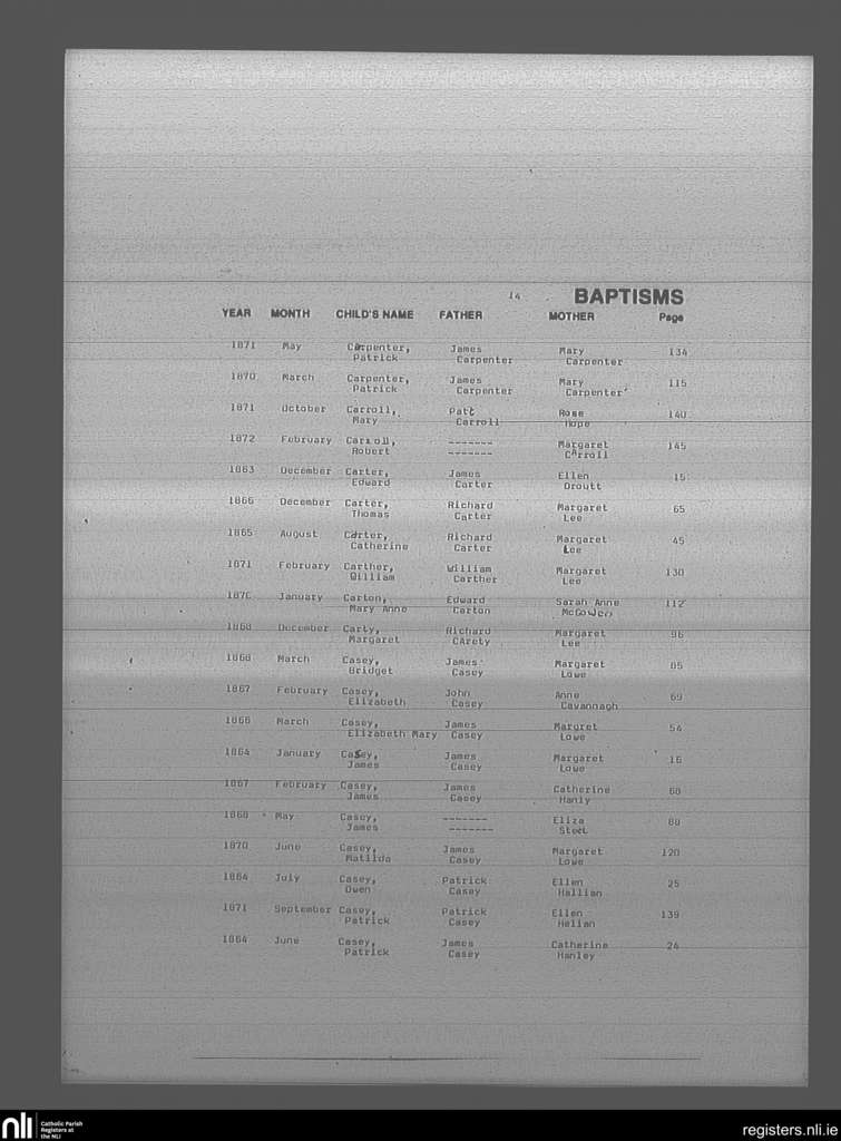 Mullingar; County of Westmeath; Diocese of Meath. Baptisms, Dec. 1863 to Feb. 1872